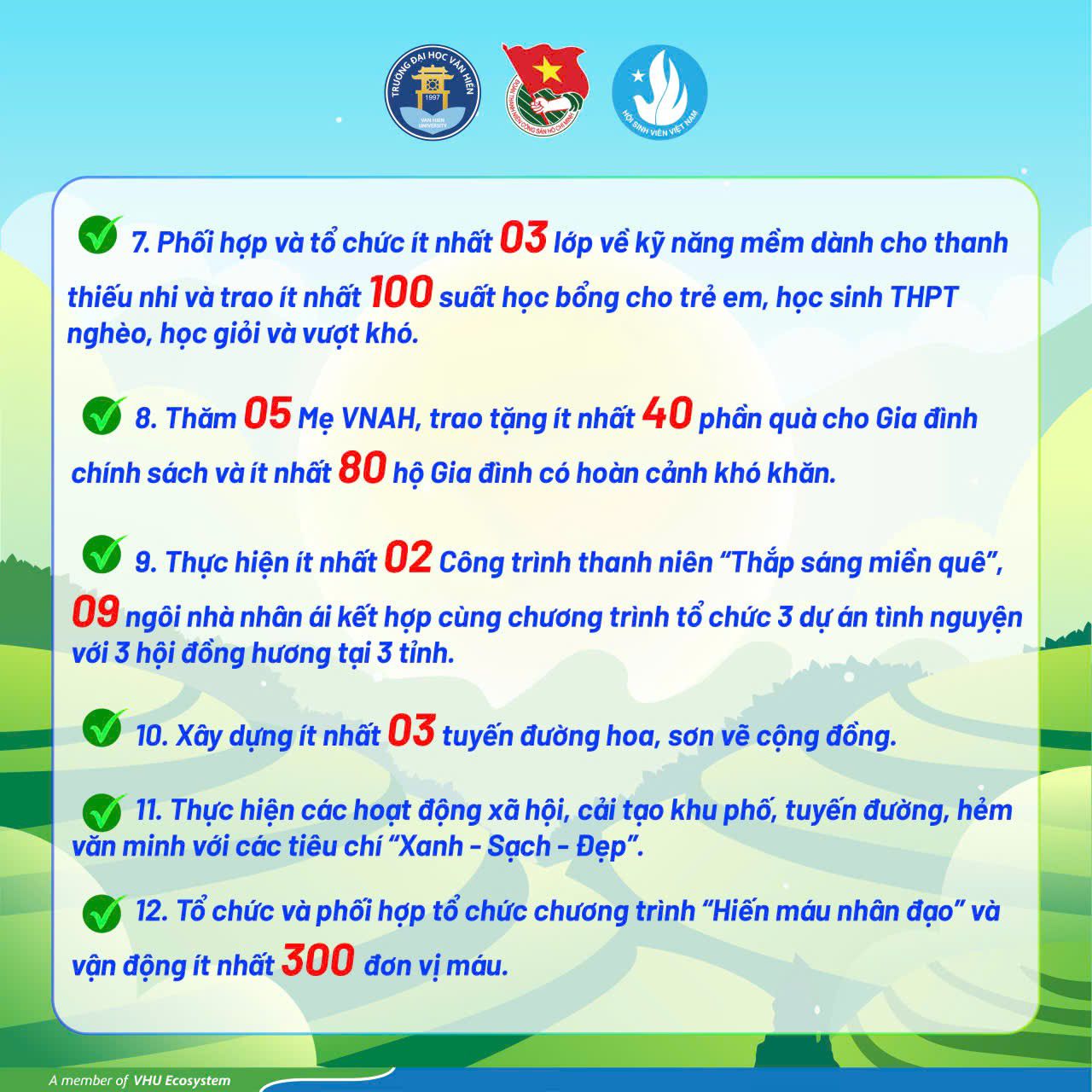 Hệ thống chỉ tiêu không chỉ là những con số, mà còn là minh chứng cho tinh thần xung kích, khát vọng cống hiến và trách nhiệm với xã hội của sinh viên Văn Hiến.
