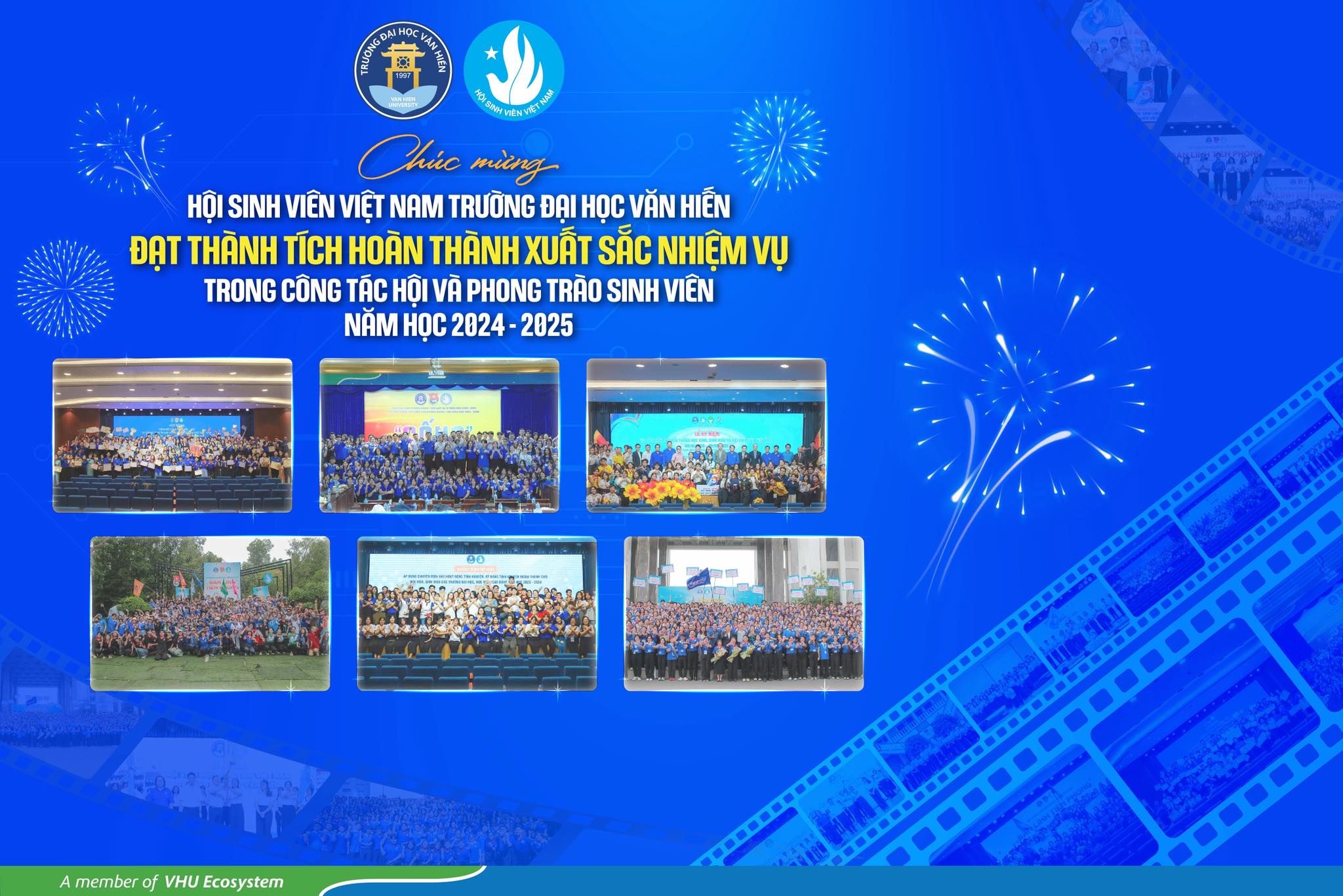 Năm học 2024 - 2025 đã khép lại với sự thành công rực rỡ của BCH Hội Sinh viên Việt Nam Trường Đại học Văn Hiến, BCH Hội Sinh viên Khóa VI với sự nỗ lực và phấn đấu không ngừng nghỉ trong việc xây dựng, phát triển và sáng tạo ra nhiều chương trình, hoạt động. Hội Sinh viên Việt Nam trường Đại học Văn Hiến đạt thành tích Hoàn thành xuất sắc nhiệm vụ Trong công tác Hội và phong trào sinh viên Thành phố năm học 2024 - 2025.