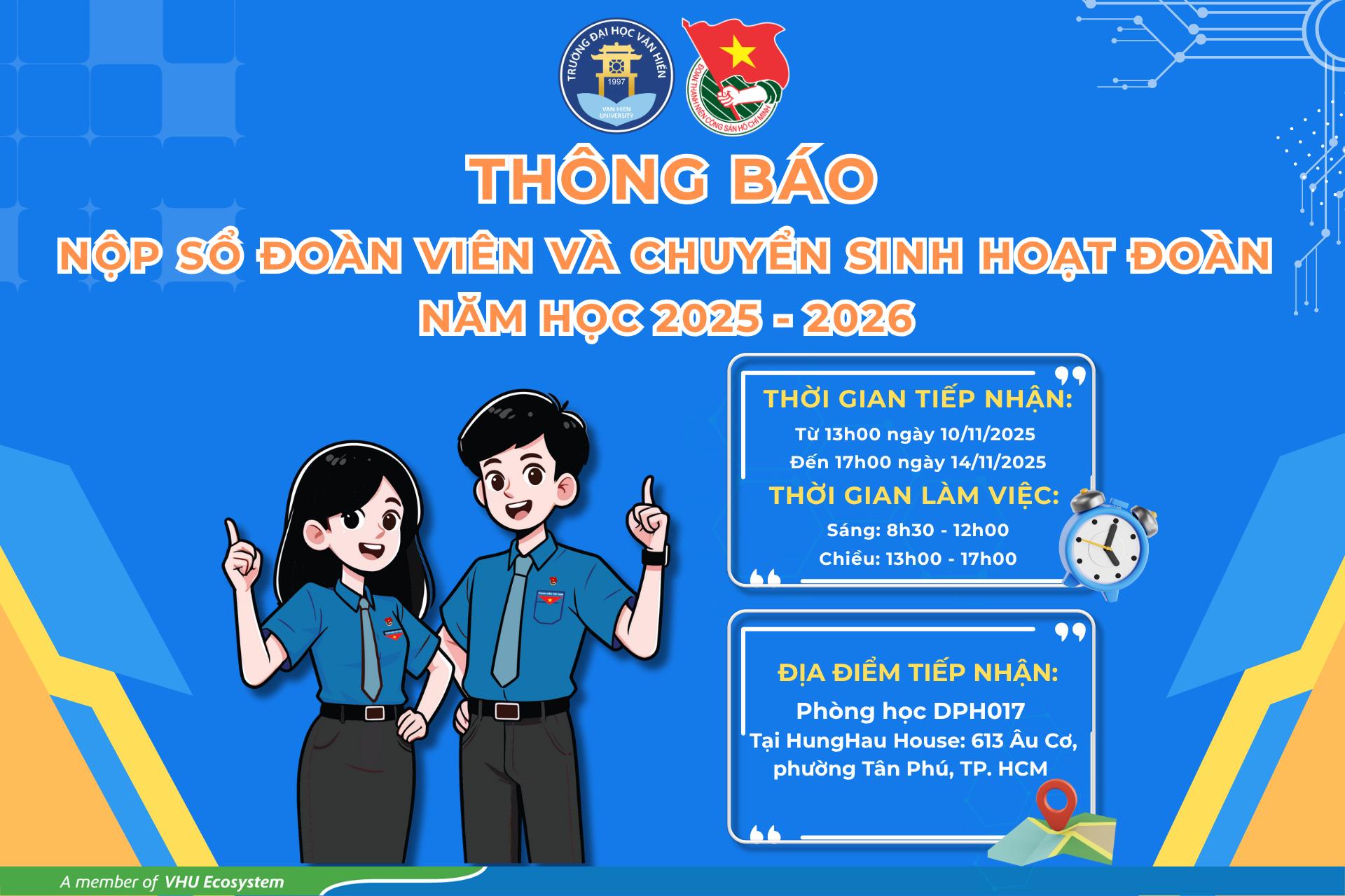 Thông báo nộp sổ Đoàn viên và chuyển sinh hoạt Đoàn năm học 2025 - 2026