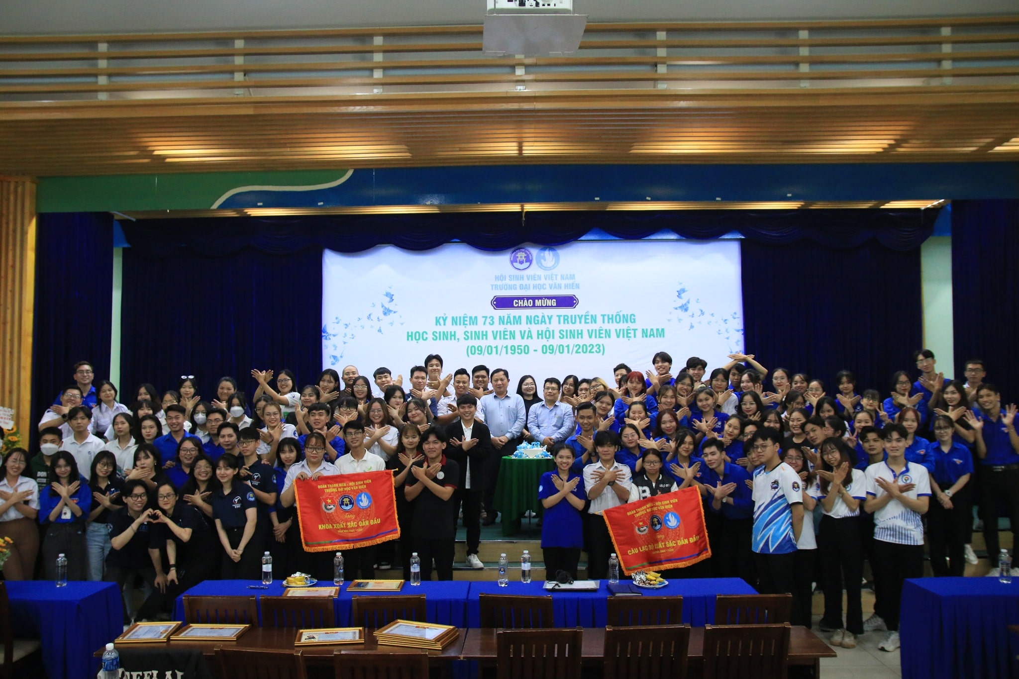 Nhằm chào mừng kỷ niệm 73 năm Ngày truyền thống Học sinh, Sinh viên (09/01/1950 - 09/01/2023) và tuyên dương, khen thưởng và ghi nhận những cá nhân, tập thể có thành tích hoạt động xuất sắc, sự nổ lực trong quá trình học tập, hoạt động trong công tác Hội và phong trào Sinh viên trong năm học 2021 – 2022, chiều nay, Đoàn Thanh niên - Hội Sinh viên Trường Đại học Văn Hiến đã tổ chức thành công chương trình "Ngày truyền thống Học sinh, Sinh viên" tại Hội trường DPH001, Trường Đại học Văn Hiến.